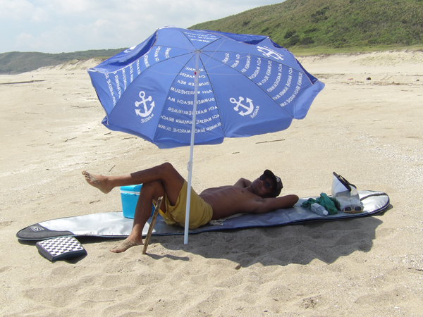 波乗りしてお腹がすいたらパラソルの下でランチ。