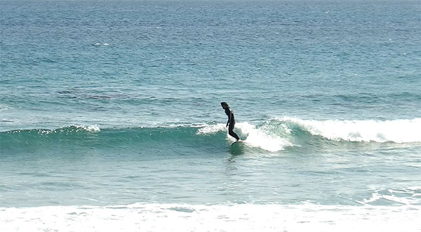 テストボードの6’10ミッドツインでグライド。